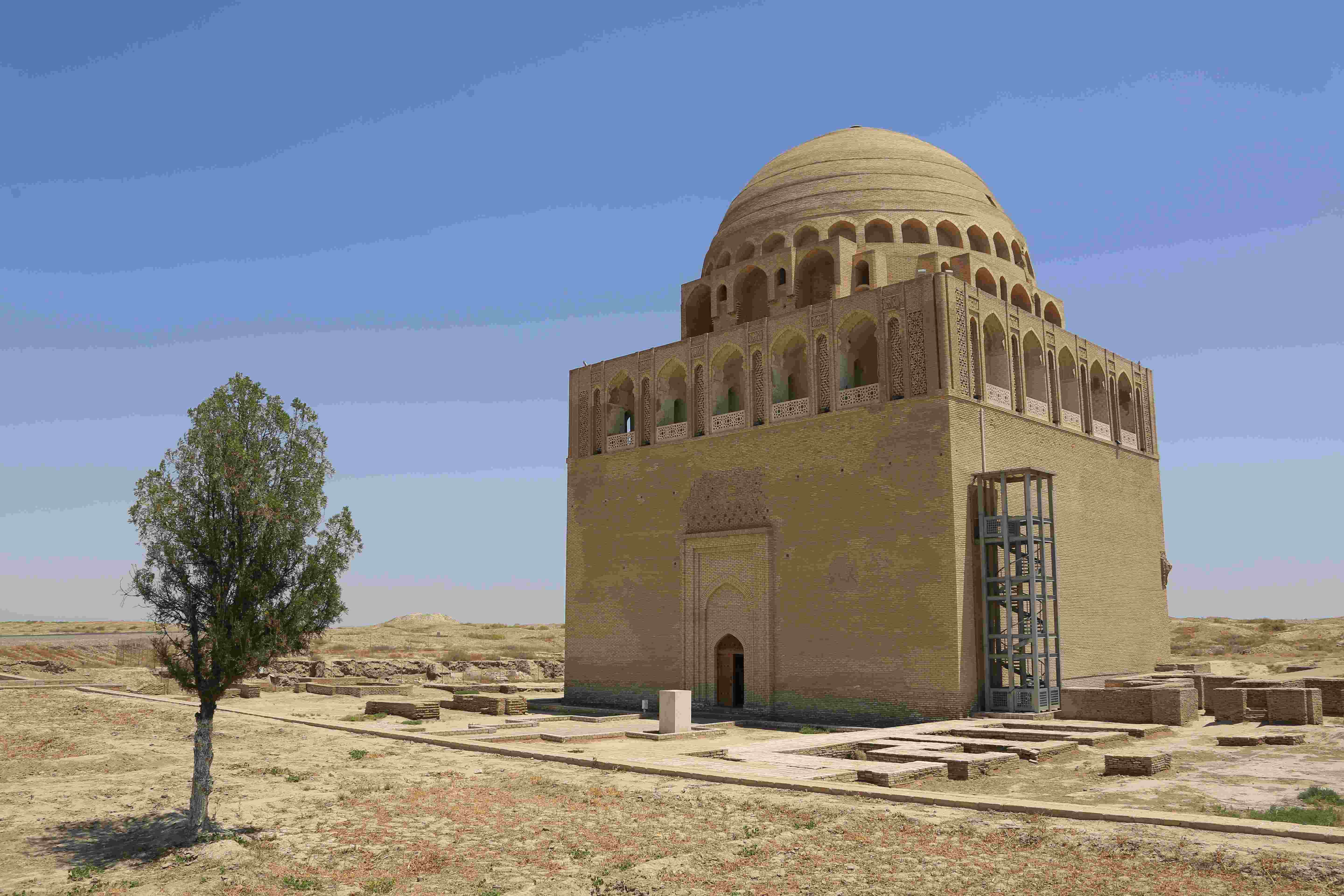 Soltan Sanjar Mausoleum most majestic architectural monument of Merv is Sultan Sanjar mausoleum called "Dar-al-Akhir" ("Otherworld"). His whole appearance it represents the highest achievements and flourishing Seljuk power. Sultan Sanjar Mausoleum is located in the center of the settlement Sultan Kala. Nearby are large monumental buildings - the palaces of Seljuk rulers and a mosque.