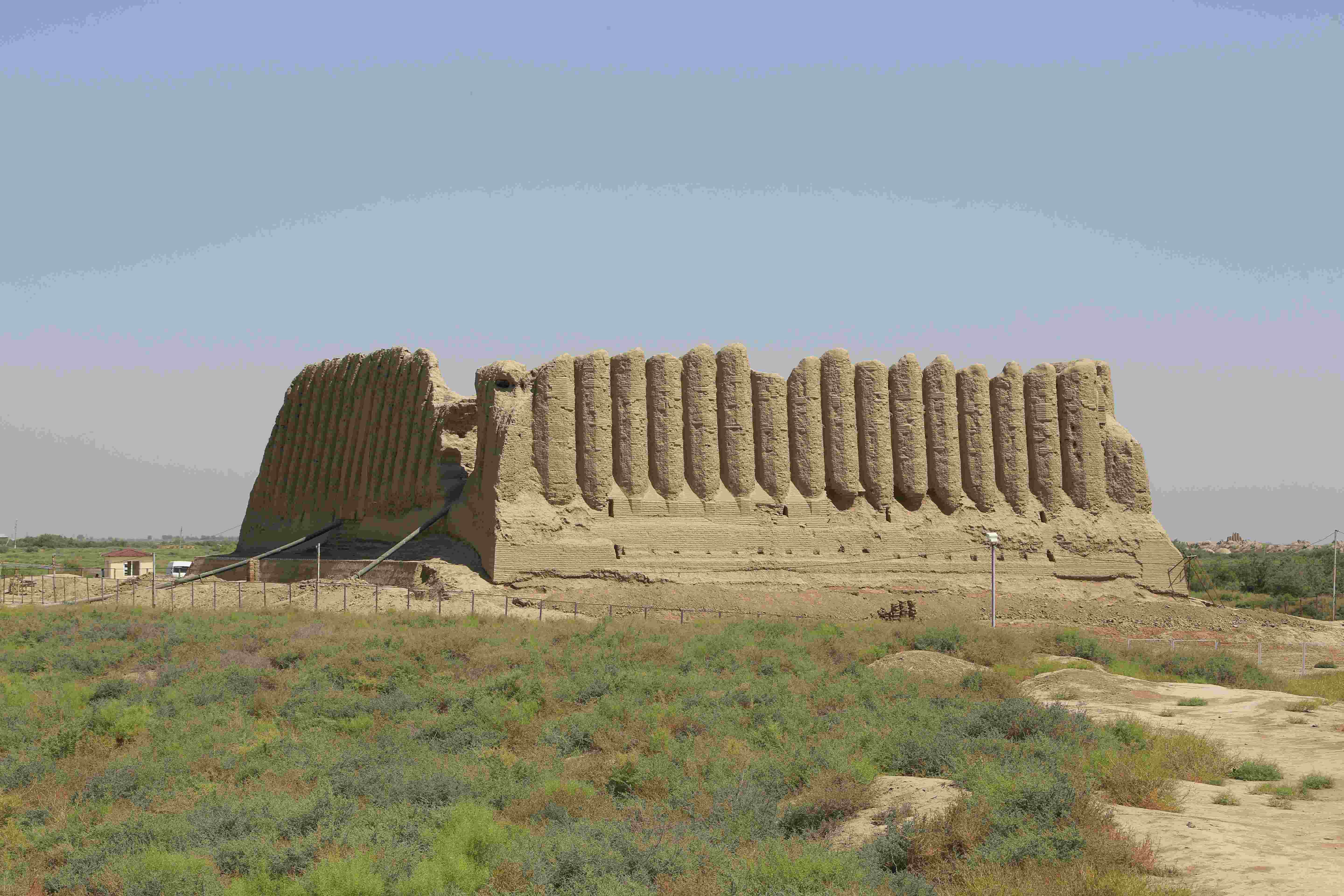 Erk-Kala fortress was the center of ancient Merv. The fortifications of Erk-Kala have sagged under earth drifts but nevertheless, have preserved their height and power. This distinguishes Erk-Kala from other fortresses. Now the height of the fortifications with steep slopes and precisely cut out towers reaches 25 - 29 m.