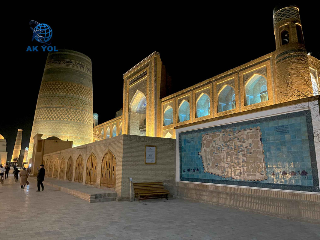 After barbeque style breakfast drive to the UNESCO World Heritage Site of Kunya Urgench. This is the ancient capital of the Khorezm Empire and is a must-see for history buffs. You'll spend the day exploring the historical monuments, including: The Kutlug Timur Minaret, one of Central Asia's tallest minarets. The beautiful Mausoleum of Turabek Khanum, a masterpiece of 14th-century architecture. Other mausoleums and ruins, such as those of Sultan Tekesh and Sultan Il Arslan, which offer a glimpse into the city's past as a major center on the Silk Road. Transfer to Dashoguz/Shavat border. Border crossing. You will meet guide in border. Begin our sightseeing tour in Khiva, exploring the 26-hectare Ichan Qala complex (10th–19th centuries), a UNESCO-listed open-air museum city surrounded by massive ancient walls. We will visit: Muhammad Amin Khan Madrasah & Kalta Minor Minaret – the largest madrasah in Khiva, famous for the colorful unfinished minaret. Kohna Ark – the former residence of Khiva’s rulers, consisting of several courtyards and offering insight into royal life. Muhammad Rahim Khan (Feruz) Madrasah – one of the most beautiful madrasahs, including a mosque, library, and study rooms. Juma Mosque – a unique mosque supported by 227 carved wooden columns. Tash Hovli Palace & Khan’s Harem – a magnificent palace with richly decorated interiors and separate quarters for the khan and his wives. Allakuli Khan Caravanserai – a historic Silk Road stop once used by traveling merchants. will also be trade, which will give you a special pleasure and you will feel like you are back in the past. Upon arrival, accommodation in the hotel.