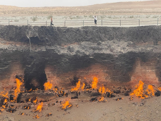 After lunch at 14:00 drive to Darvaza- Gas Crater, which is a huge flaming crater, located 280 km to the north of Ashgabat.