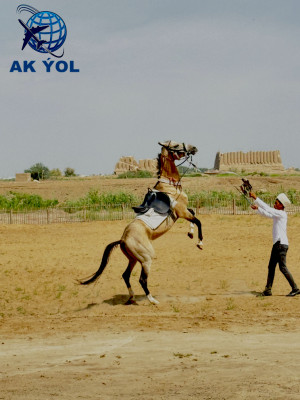 После завтрака посещение Ахалтекинской конной фермы. Поездка на конезавод Ахалтеке. Конная ферма расположена в сельской местности, за городом Геокдепе, в 55 км. Приезжать. Приветственный чай. Экскурсия на ферму, где можно увидеть ахалтекинскую лошадь и туркменскую собаку алабай. Верховая езда по вашему выбору. Поездка в Геокдепе. Посещение мечети Геокдепе. Продолжение поездки в горы Копедаг. Прибытие в долину Нохур. Осмотр достопримечательностей деревни, затем поездка в горы. Исследуйте долину, отправьтесь в поход в горы. Обед в туристическом домике или дома. Лучшее время для посещения Нохура — май, когда он весь в зелени и цветах. В горах возможны сильные и кратковременные дожди. Возвращение в Ашхабад. Ночью.
