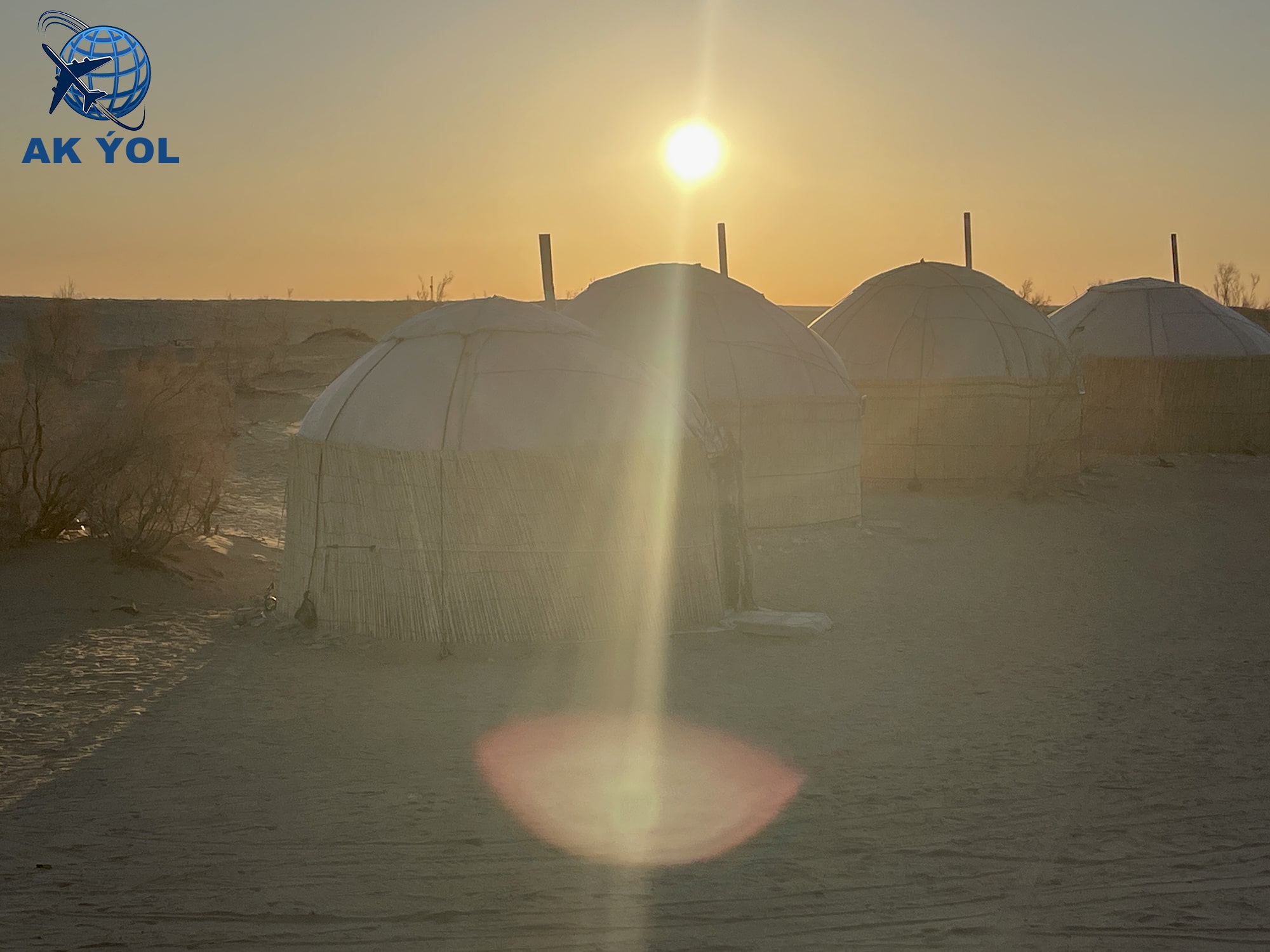 Десерт в пустыне: туркменские дыни и арбузы: если вы путешествуете в сезон сбора урожая (конец лета – начало осени), то знаменитые, невероятно сладкие туркменские дыни и арбузы – самый любимый натуральный десерт в стране, который часто подают. Мы также предлагаем нашим гостям национальные туркменские напитки: зелёный чай, кефир/айран и верблюжье молоко (чал).